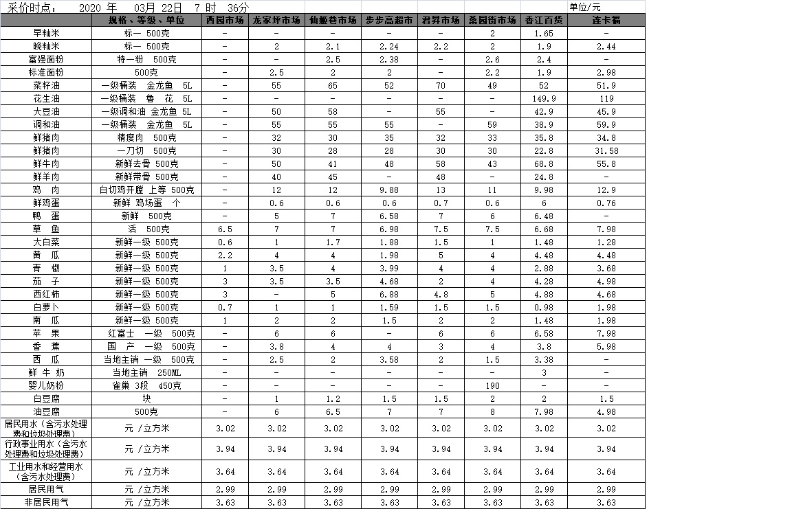 【物价】 2020-03-22衡阳市民生价格信息