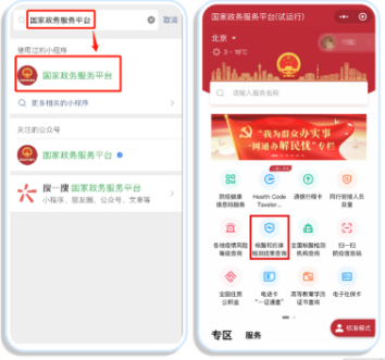 完成核酸检测后,还可通过国家政务服务平台“核酸和抗体检测结果查询”服务查看本人核酸检测结果。