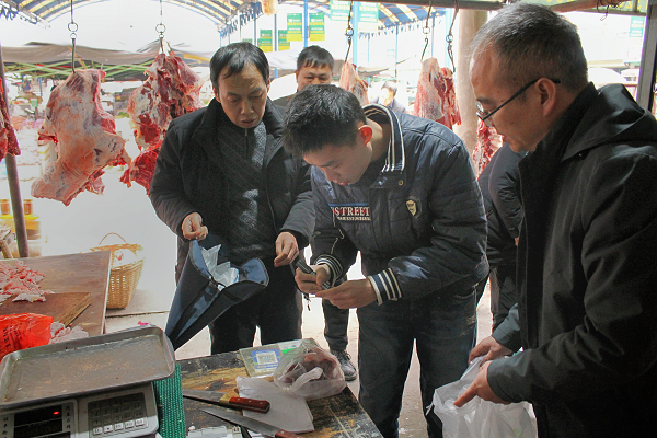 2月10日,汉中市农业农村局王柯清科长、市动物疫控中心副主任陈兴平等人陪同农业农村部农产品及加工品质量监督检测中心(广州)检查组来勉县开展畜禽产品质量安全例行监测抽检工作,县动物疫控中心副主任成泓江等人陪同抽检。