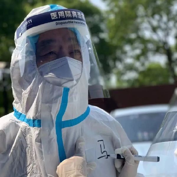 这些天,在闵行区马桥镇,品雅苑居民区的抗疫志愿者队伍里,有一位背上写着“共产党员”的“大白”让居民印象深刻。穿着防护服时,他和其他“大白”没什么两样,忙碌奔波,哪里有需要就去哪里。但当他脱下防护服时,身边年轻的志愿者都会情不自禁地向其表达敬意。
