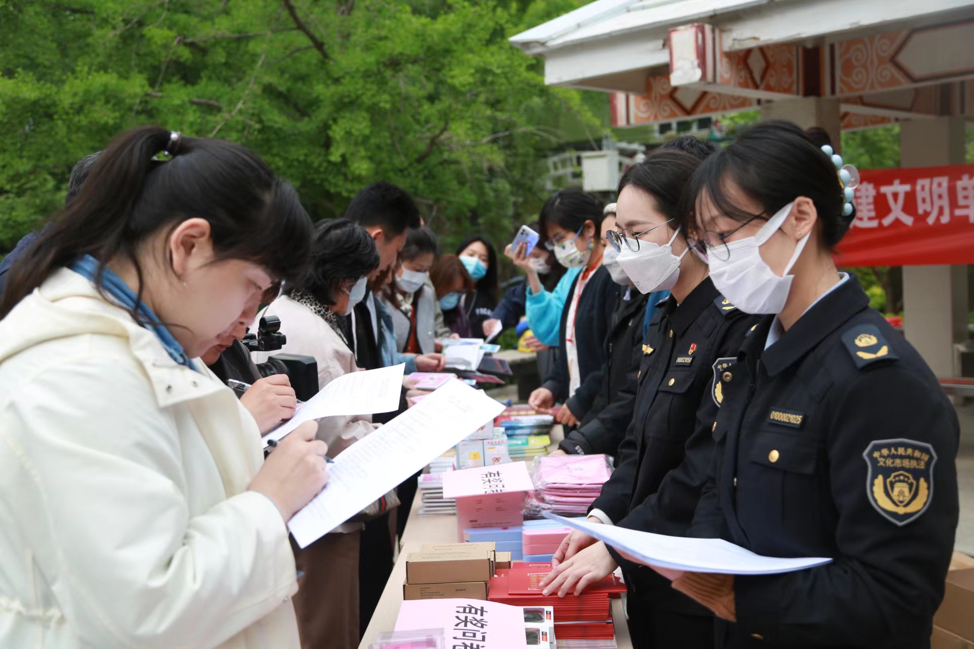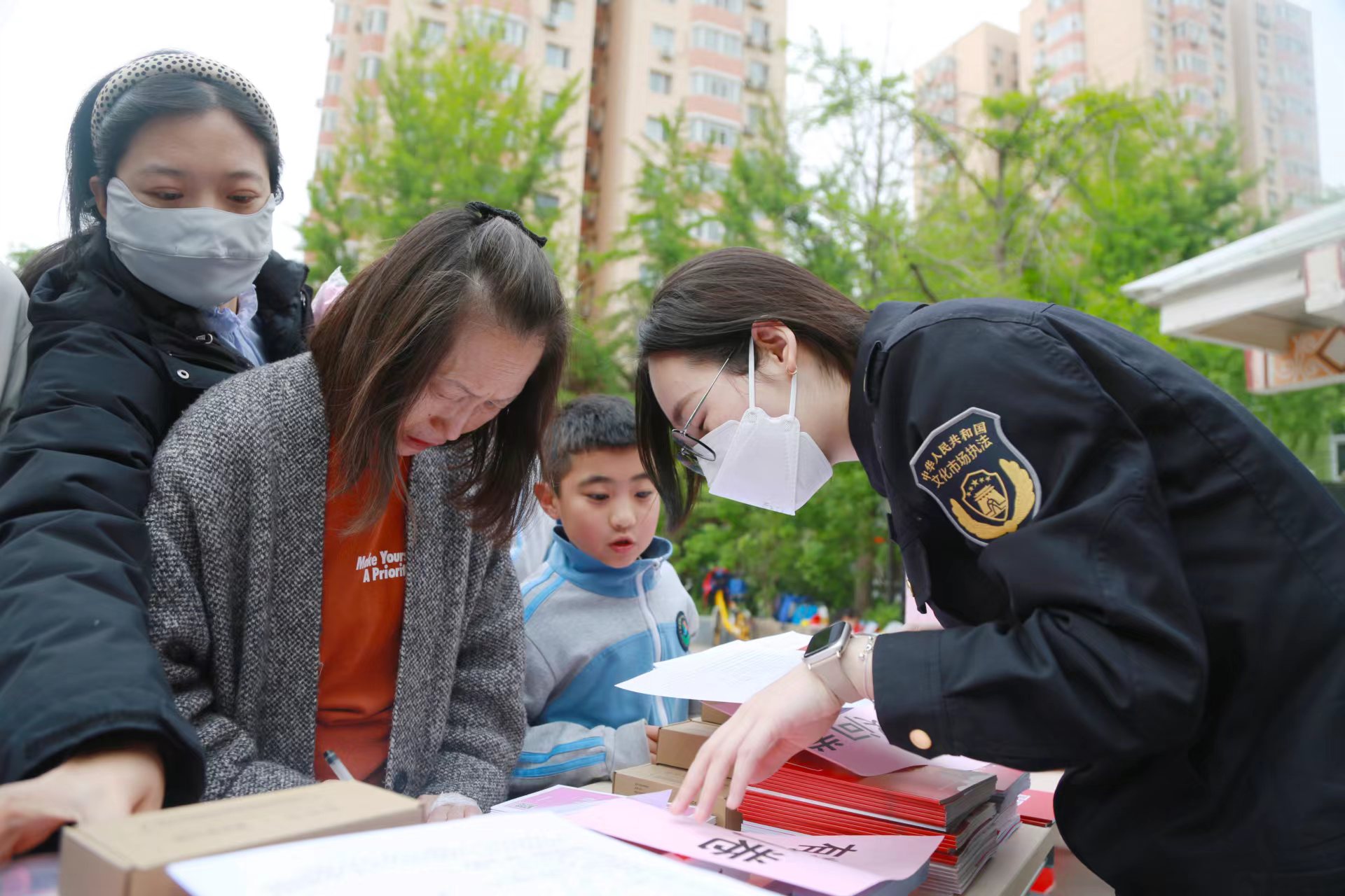 春色恰如许,读书正当时。4月23日下午,为迎接世界读书日,全面贯彻落实“八五”普法规划,进一步增强未成年人及家长抵制非法出版物和网络不良信息的能力,朝阳区文化市场综合执法大队联合麦子店街道,在枣营北里社区开展了2023年“护苗·绿书签”法制宣传活动。