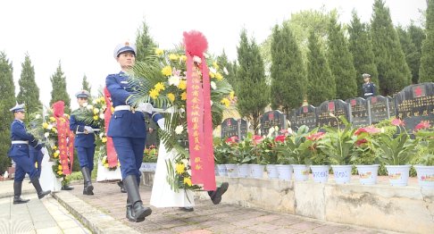 随着深情的《献花曲》响起,8名礼兵手抬4个花篮缓步走向烈士墓,将花篮整齐摆放在烈士墓前,胡新利、肖万朋、丁文胜缓步上前仔细整理缎带。全体人员向革命先烈行三鞠躬礼,并依次瞻仰烈士陵园。