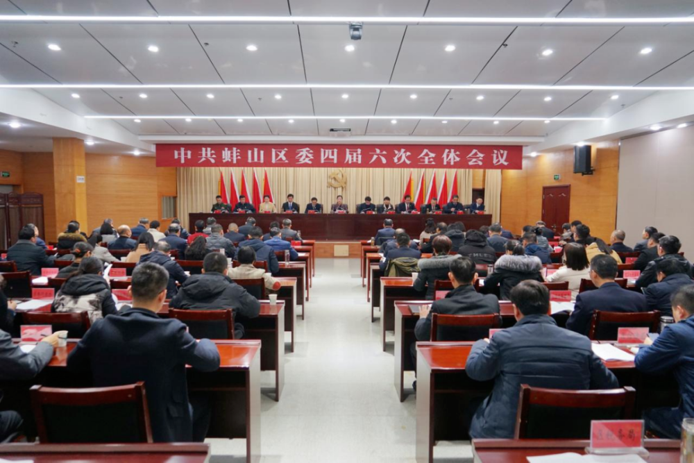 12月29日上午,中共蚌山区委四届六次全体会议召开。全会由区委常委会主持。区委书记桑延慧出席会议并讲话。区领导关于、安永民、石艳、路军、宋伟、韩莉、吴淮庆、简家贤、吴军、曾鸣、潘成佳,区委委员、候补委员等出席会议。不是区委委员的其他区级领导同志,各乡街(社区中心)、区直各部门、区委各巡察组、垂直管理部门、区属企业主要负责同志和部分区党代会代表列席会议。