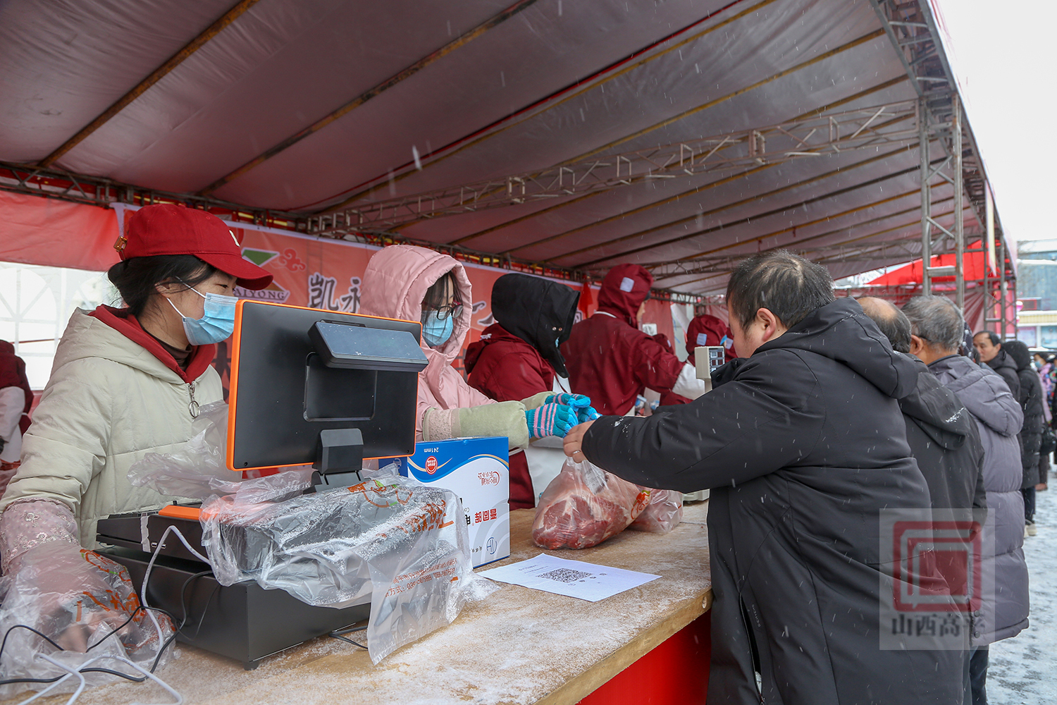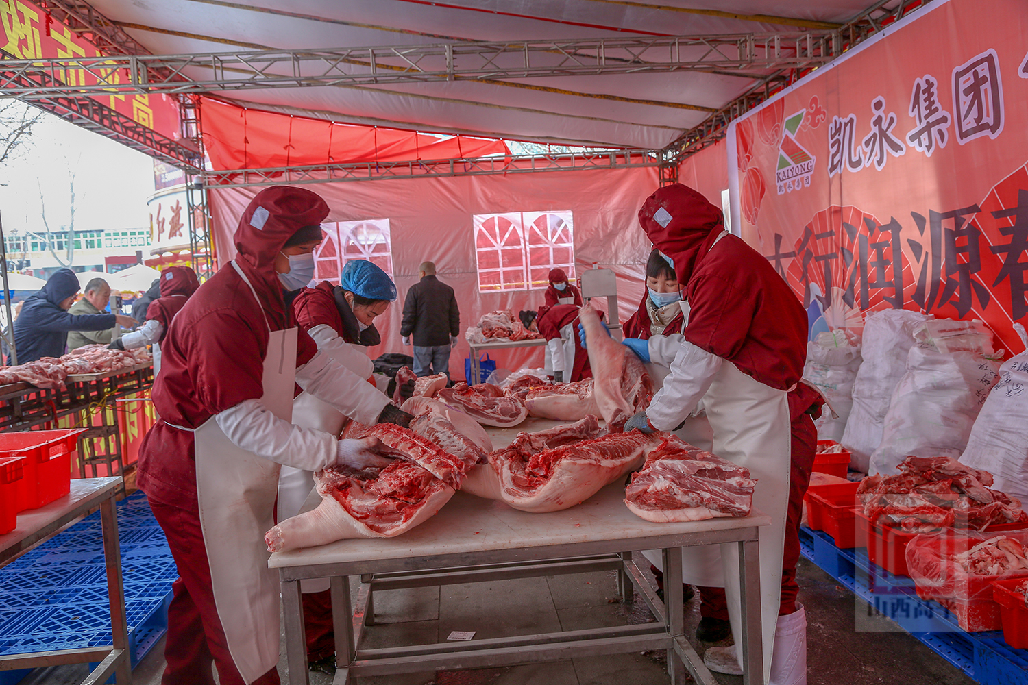为做好春节市场价格补贴供应工作,今年凯永集团太行润源食品有限公司在市区增设了8个猪肉供应点,全力满足群众购买需求。来到红旗商厦北停车场的猪肉供应点,前来买肉的市民有序排队,精心挑选猪肉。