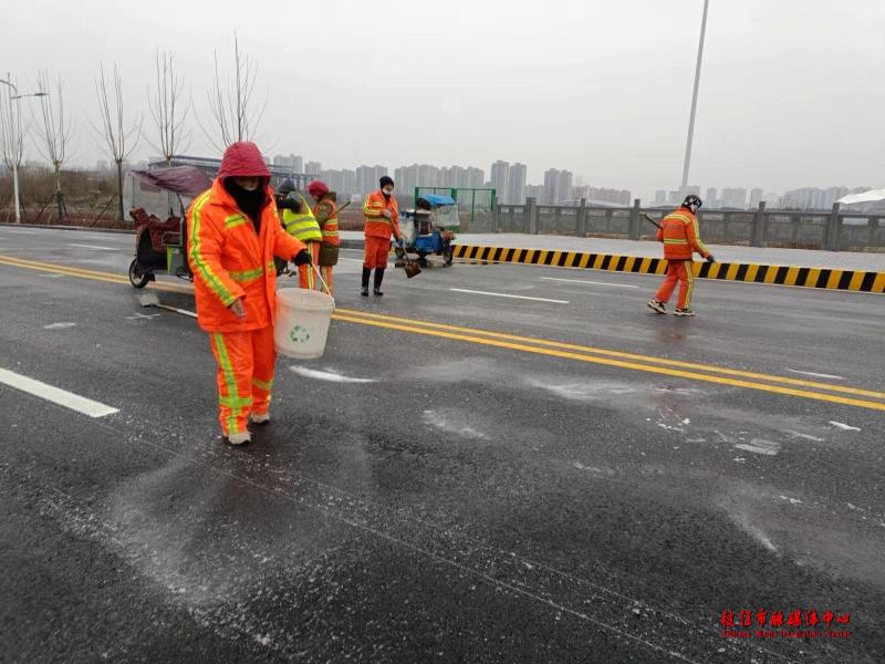 2月2日凌晨雪后,城区各路段出现积雪,给车辆行驶、群众出行带来了诸多的不便,市城管执法局有备而战,启动雨雪天气应急预案,按照“定路、定人、定时”要求,组织520余名环卫工人开展融雪除冰工作,一是用铁锹、扫把等工具将车行道路面积雪、冰渣清理干净,二是在桥梁、易结冰路段抛洒融雪剂,最大程度确保道路通行顺畅。