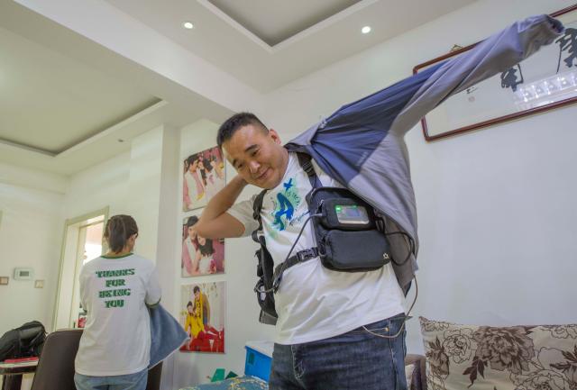 经过术后适应,杜磊已经习惯了这套体外供电设备。