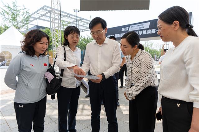余峰调研2024国际篮联三人篮球挑战赛枝江站筹备工作