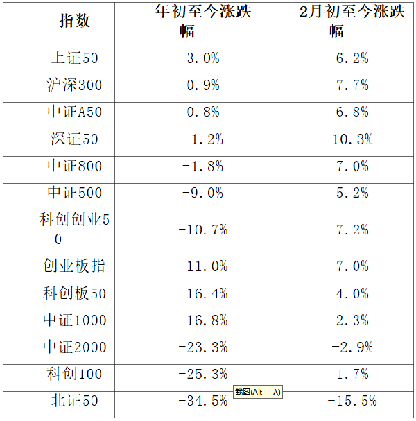 上半年A股宽基指数涨跌情况