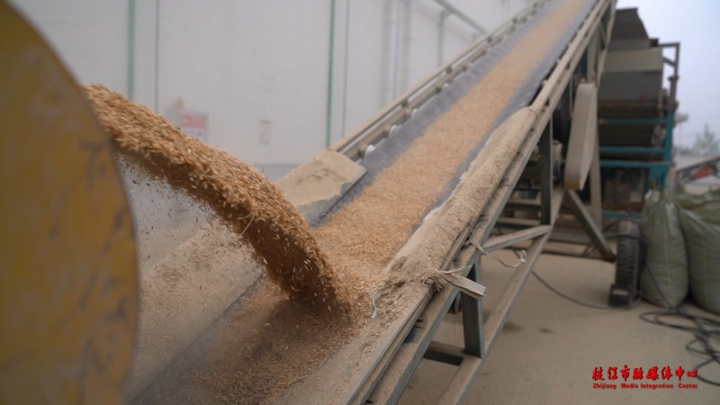 清晨,一辆辆满载新粮的卡车陆续驶入枝江市国家粮食储备有限公司的粮库,在工人娴熟的操作下,一粒粒金灿灿的稻米被传送带上谷山,排队进入早已预备好的粮仓中。