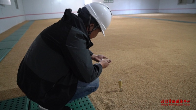 陈洋:“通过各个摄像头,实时的监管作业人员和操作人员的安全动态,通过粮温测控系统,能够实时关注粮情的变化,提醒工作人员及时进行处理,确保储粮安全。”