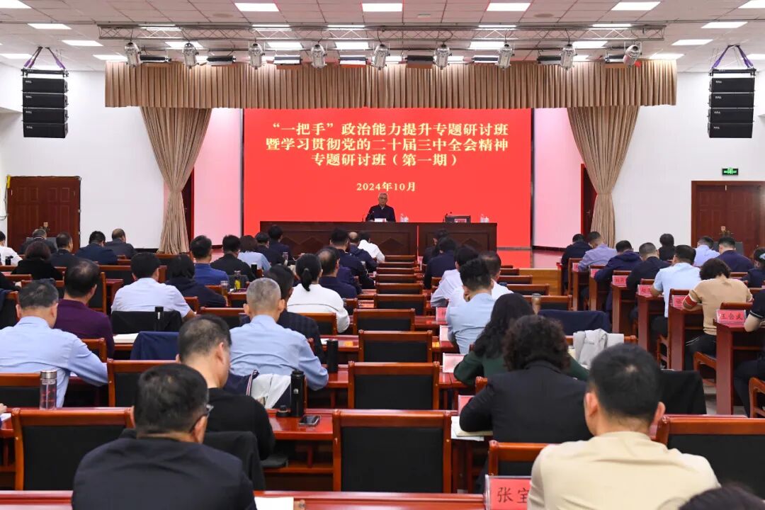 10月9日至11日,东丽区“一把手”政治能力提升专题研讨班暨学习贯彻党的二十届三中全会精神专题研讨班第一期在区委党校举办。11日,区委书记贾堤为研讨班作专题辅导。区委常委、区委办公室主任王洪府主持。