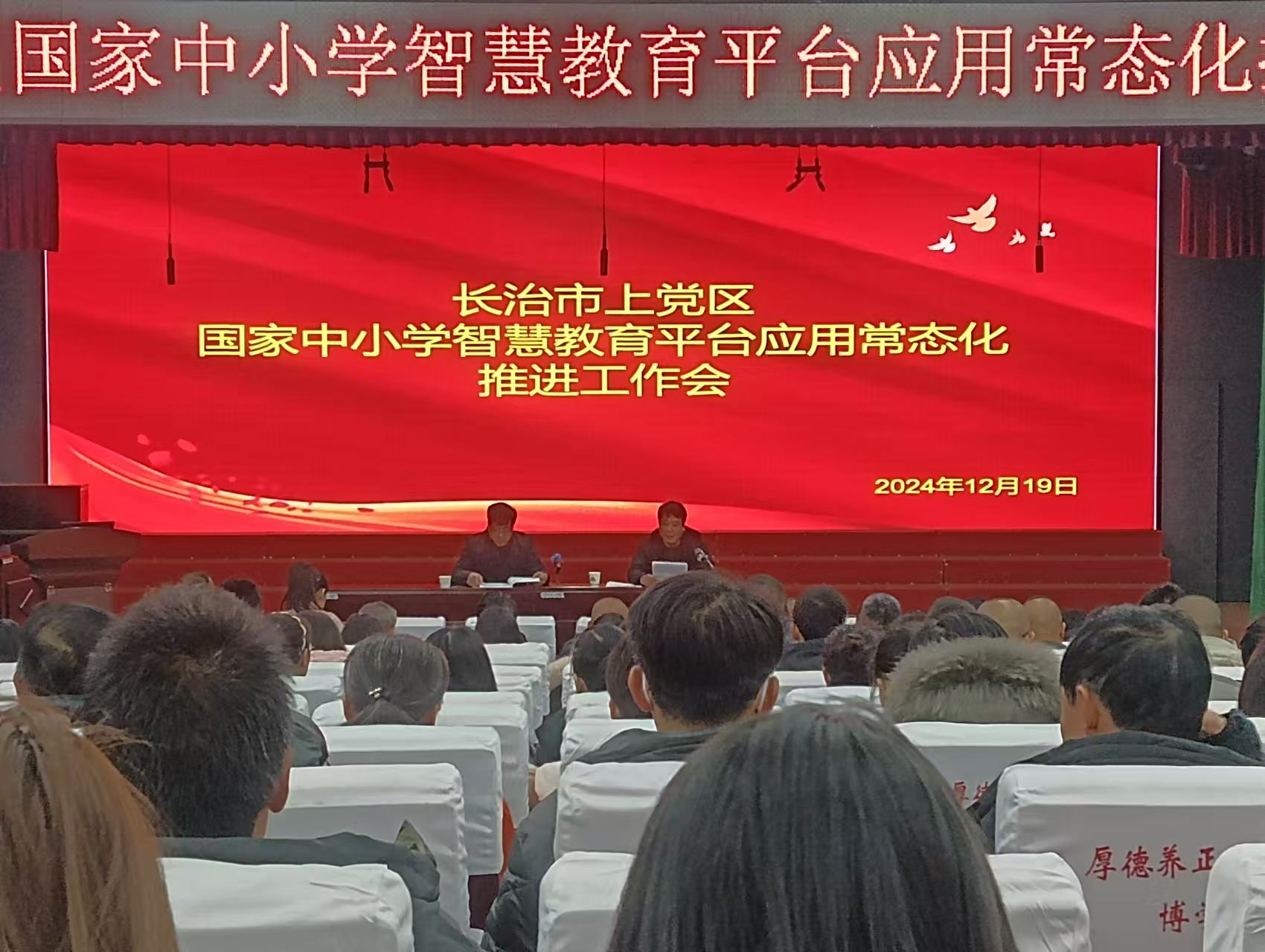 ????12月19日,国家中小学智慧教育平台应用常态化推进会在实验小学召开。局领导张旭斌出席并讲话。全区各学校分管电教副校长,平台校级管理员、电教员、培训教师、骨干教师,机关教研室全体人员参加会议。